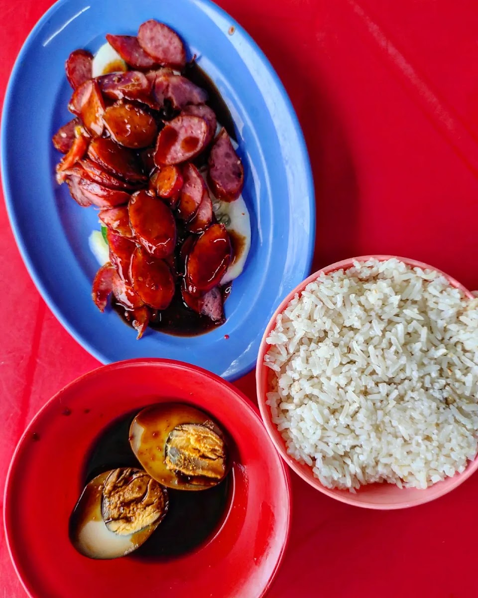 Kapar's Gem Photos at suriyapriya.food.diary Roasted Chicken Rice Steamed Chicken Rice Add on Char Siew Add on 2 sets of Eggs Add on Pork Sausage Add on 2 sets of Rice (Big Bowl) Hot Barley Drink Chinese Tea Total : ????????????????.???????? April 2023 Chicken Rice Home Stall, Jalan Imam Abdul Aziz 6, Taman Jaya 2, 42200 Kapar, Selangor That one place majority of Kapar's residents recommended to have a visit and try at least once. This was before checking the Google rating. What's special about this place? Highly rated and the crowds in peak hours. Their target customers are mostly based around them. They have repeating customers of all age group over a long period. And to my surprise, of all the customers coming in when we dine in around 7.30am, only 1/3 were Chinese, the rest were mostly Indians. For a shop in a residential corner lot unit, it was decently hygiene. Cones were arranged for the lunch hour queue. Quite systematic. Neatly arranged and presentable servings. About the food, juicy roasted chicken and eggs infused with added sauce, both of them worth trying. Steamed/white chicken and char siew were tasty, basic and firm. Chilli was nice not overpowering with vinegar. They had crispy pork too, but we didn't try. Walked around just to see how the chopping goes, and when peeked, noticed this Pork Sausage. This is a must try. Topped with the same sauce added on Eggs. That sauce made it even tastier. With that fatty sweetness taste like lap cheong, can't resist add on urge. Had to add rice and eggs to accompany the Pork Sausage set. Open as early as 7am until evening. Easy parking. Reasonable pricing. Generous portion. Reasonably clean. Chilli & kicap tray on table ! Will repeat visit if passing by Kapar. Touch N Go QR pay Cash